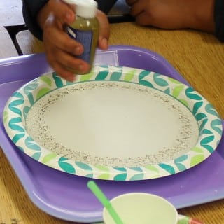Fill the bottom of a clean plate (and a plate really works best with this one) with milk. Put several drops of different colored liquid food coloring near the center of the plate. It tends to work best if the drops touch each other, but it’s ok if they don’t. Drop one drop of soap in the middle of the colors. Watch the colors whirl and twirl and swirl in the milk.